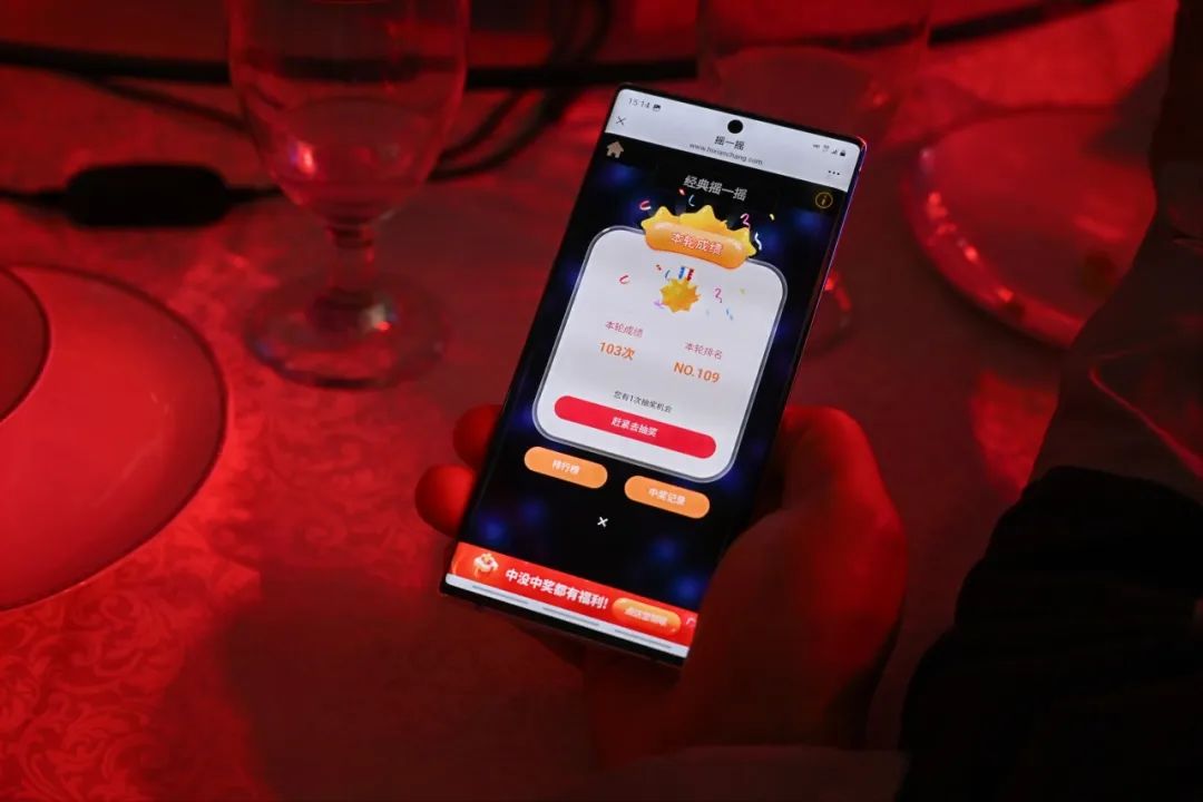 抽奖与红包齐飞,会场气氛高涨,惊喜连连,欢笑不断。“疯狂摇一摇”和“祝福短信抽奖”轮番上阵,此次团拜会的幸运之星不断产生,同时随着一个个红包的开启,新年的祝福也一一传递。